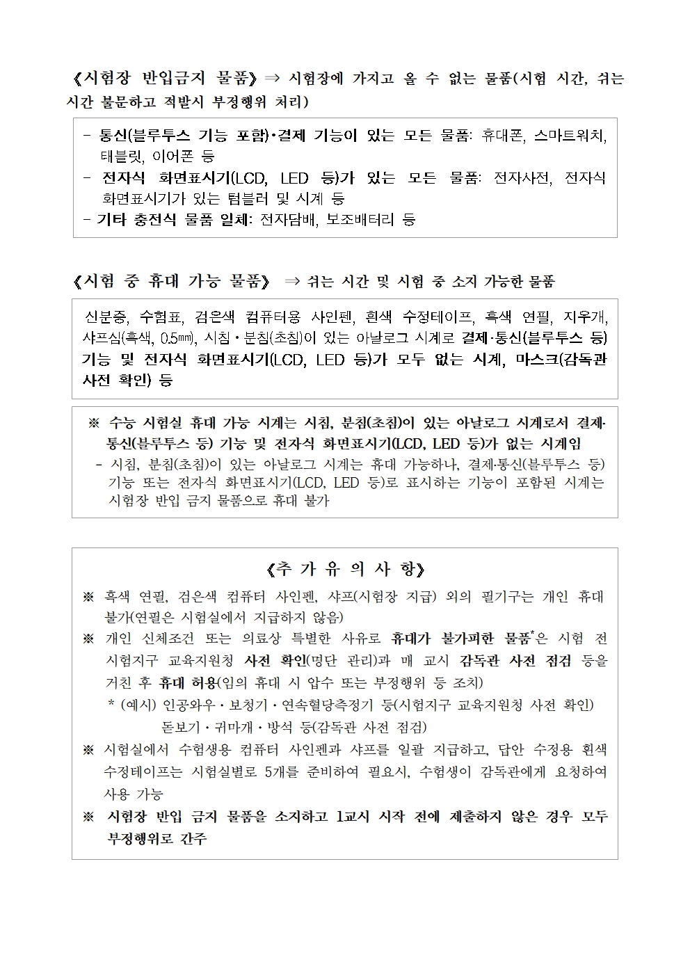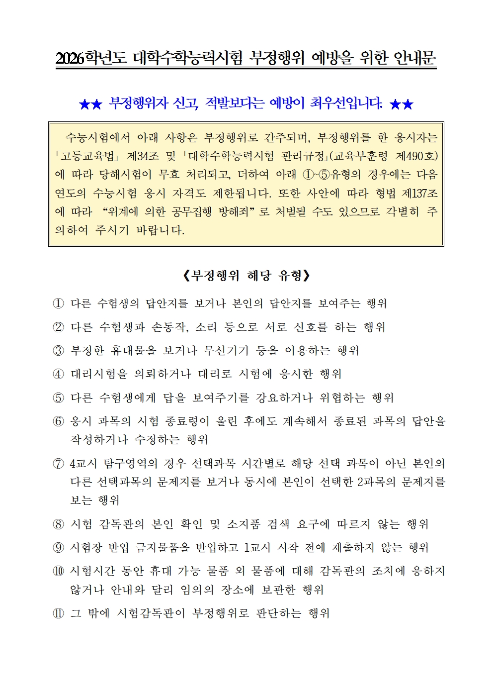 2026학년도 대학수학능력시험 부정행위 예방을 위한 안내문